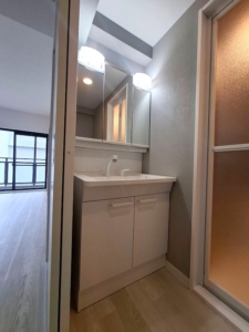 築30年のマンションにて洗面化粧台のリフォーム工事を行いました。今回採用したのは、TOTOの「Vシリーズ(W750・三面鏡タイプ)」です。限られたスペースでも使いやすく、収納力と清掃性を兼ね備えた洗面空間へと仕上がりました。Vシリーズは、シンプルで扱いやすい設計が特長の洗面化粧台で、コストを抑えながらも日常使いに必要な機能をしっかり備えています。三面鏡タイプを採用することで、鏡裏に収納スペースを確保でき、化粧品や歯ブラシ、日用品などをすっきりと整理整頓することが可能です。生活感を抑えながら、清潔感のある洗面空間を維持できます。本体はW750サイズで、マンションの洗面スペースにも無理なく設置できるちょうど良いサイズ感。扉カラーにはホワイトを採用し、空間全体を明るく清潔感のある印象に仕上げています。シンプルなデザインのため、周囲の内装とも調和しやすく、長く使っても飽きのこない仕様です。キャビネットは2枚扉タイプを採用しており、洗剤やストック品など高さのある物も収納しやすいのが特長です。内部空間を有効に使えるため、日々の使い勝手が向上します。また、TOTOならではのボウル一体型カウンターは継ぎ目が少なく、汚れが溜まりにくいため、お手入れがしやすい設計となっています。マンションの洗面リフォームでは、サイズ・収納・清掃性のバランスが重要です。今回のように機能性に優れた洗面化粧台を採用することで、日々の暮らしがより快適になります。洗面化粧台の交換やリフォームをご検討の際は、ぜひトラストホームにご相談ください。快適で使いやすい洗面空間をご提案いたします。