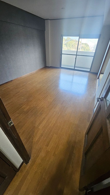 築32年のマンションにて内装床リフォーム工事を行いました。今回採用したのは、サンゲツのフロアタイル「WD-8011」です。既存のフローリングから張替えを行い、空間の印象を大きく変えるとともに、機能性も向上した仕上がりとなりました。施工前は濃い色味のフローリングで落ち着いた雰囲気ではあるものの、やや重たい印象の空間でしたが、施工後は明るいグレージュ系のフロアタイルへ変更することで、室内全体が一気に明るく、開放感のある印象に変化しました。アクセントクロスとの相性も良く、シンプルながらも洗練されたモダンな空間に仕上がっています。サンゲツのフロアタイルは、耐久性・耐水性に優れている点が大きな特長です。キズや汚れに強く、日常生活によるダメージにも強いため、美しい状態を長く保つことができます。また、水ハネや汚れもサッと拭き取れるため、お手入れがしやすく、清潔な状態を維持しやすい素材です。さらに、フロアタイルはデザイン性も高く、本物の木目のようなリアルな質感を再現できるため、空間のグレード感を高めることができます。部分的な補修や張替えにも対応しやすく、メンテナンス性にも優れています。床の張替えは、室内の印象を大きく左右する重要なリフォームのひとつです。今回のように素材やカラーを工夫することで、より快適でおしゃれな住空間を実現できます。北九州市小倉北区で内装リフォームや床工事をご検討の際は、ぜひトラストホーム北九州店にご相談ください。理想の住まいづくりをサポートいたします。